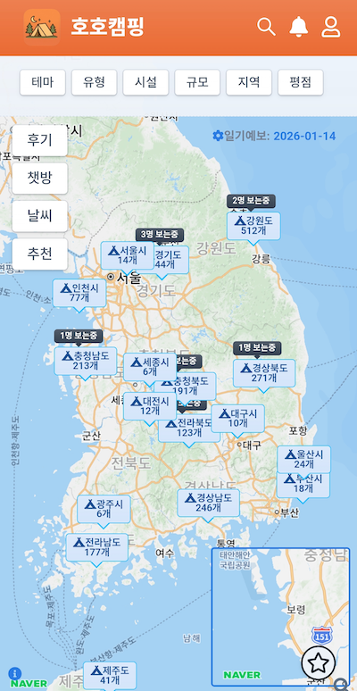 여러 캠핑장 메타 사이트가 존재해서,