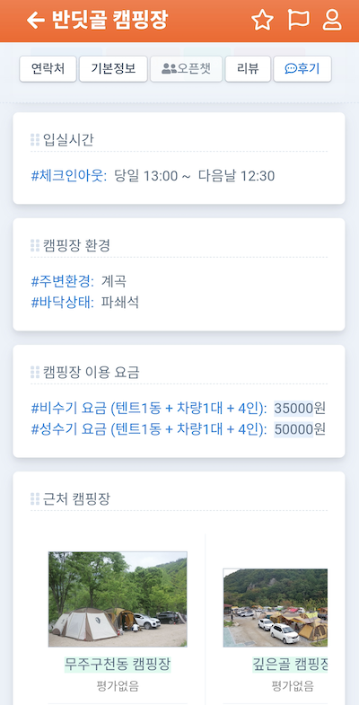 결국은 추천을 받더라도, 다시 그 캠핑장에 대한 정보를 얻기 위해서 검색의 바다에 허우적거려야 한다는건 정말 피곤한 일이었다.